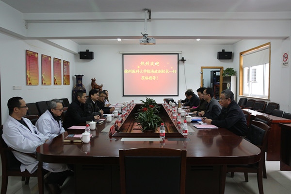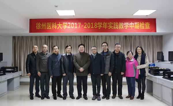 2018年1月5日下午,徐州医科大学巡查组一行6人在副校长徐海波的带领下莅临金沙娱乐城app,进行2017~2018学年中期实践教学检查。金沙娱乐城app党委书记、院长沈根海,副院长李根华,科教处主任管学妹陪同检查。