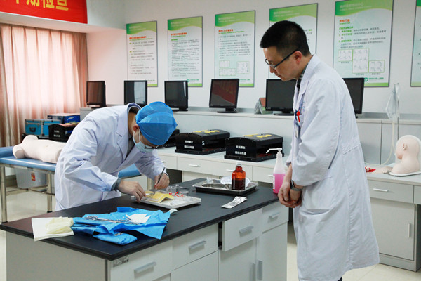 检查组的两位临床专家及金沙娱乐城app三位专科副主任医师,对临床专业16位实习生分组进行了内、外、妇、儿学科的操作技能考核。考核专家对在金沙娱乐城app实习同学的技能操作水平表示认可。