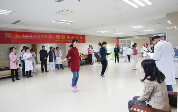 为贯彻党的十九大精神、践行健康中国战略,金沙娱乐城app工会经过前期全面发动、精心准备,于1月18日如期在体检中心大厅举办了“第五届迎新系列活动”。 本次活动得到了全院职工的积极响应,近200名职工报名参加了跳绳、呼啦圈比赛。