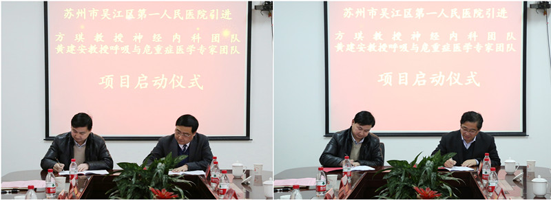 2月7日,吴江区级临床专家团队项目引进启动仪式在金沙娱乐城app行政楼会议室举行,标志着金沙娱乐城app成功引进苏州大学附属第一医院方琪教授神经内科团队、黄建安教授呼吸与危重症医学专家团队。吴江区卫计委副主任管罕英、医政科科长薛建英,方琪团队核心组成员、黄建安团队核心成员,金沙娱乐城app院长沈根海,副院长李根华、吴巧珍、张晓剑以及部分职能科室主任、依托科室代表出席了仪式。