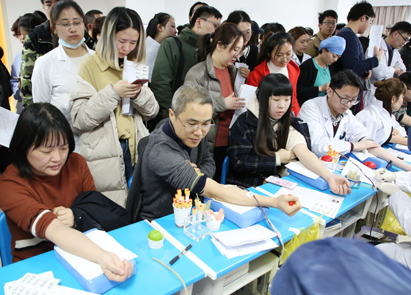 在他的带领下,献血活动如火如荼。献血队伍中既有临床医护人员,又有行政管理人员;既有护理部、科教处的实习同学,还有社区员工等。有的医护人员在繁忙的工作间隙前来献血,之后就又马上投入到工作岗位;有的刚下夜班又上献血桌;还有的在家轮休也赶来积极参与……尤其因为今天正值“三八国际劳动妇女节”,前来献血的女同胞们更加热情高涨,与此同时,男同胞们也不甘示弱,大家用实际行动诠释了大爱无疆,无私奉献的精神,彰显了金沙娱乐城app职工热心公益、医者仁心的高尚情怀。