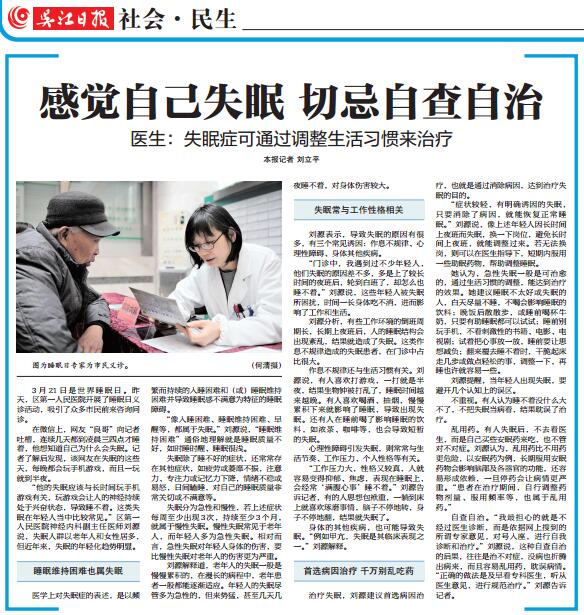 “门诊中,我遇到过不少年轻人,他们失眠的原因差不多,多是上了较长时间的夜班后,轮到白班了,却怎么也睡不着。”刘源说,这些年轻人被失眠所困扰,时间一长身体吃不消,进而影响了工作和生活。