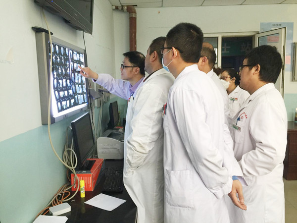 王林全(左一)在阿图什人民医院与当地医生一起探讨病例。