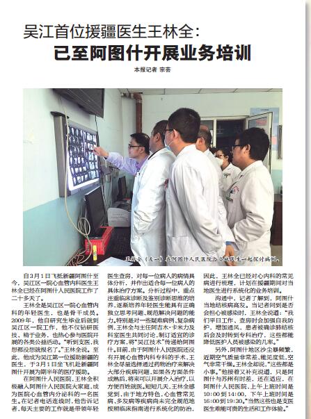 自3月1日飞抵新疆阿图什至今,吴江区一院心血管内科医生王林全已经在阿图什人民医院工作了二十多天了。