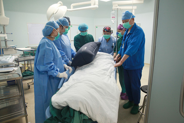 随着火势蔓延,指挥组汇报上级部门及总值班,组织救援组、疏散组进行应急逃生疏散,并做好全科指挥工作。救护组手术医生接到麻醉科主任、器械班护士指令,简单处理伤口后准备撤离。巡回护士与器械护士快速清点器械、敷料、缝针、拆无菌纱布与无菌敷贴于台上。器械护士协助手术医生切口上覆盖无菌纱布并用无菌敷贴封闭。与手术医生一起将敷料包裹放于器械车下,将手术清点相关器械物品包裹并标记后放于器械车。麻醉医师用简易呼吸气囊连接气管导管辅助呼吸,麻醉师停用吸入性麻醉气体,立即脱开麻醉机,使用简易呼吸气囊维持有效通气并负责观察病情。疏散组一方面带好必备的药品、医疗器械,将病人转送至转运床上,共同撤离手术间赶至消防通道口与担架队人员会和一同撤离手术病人。另一方面转移术前准备未进行手术病人。在救护组及疏散组的共同努力下,手术病人及医护人员全部撤离火灾区域。整个练过程有条不紊,此次消防应急疏散演练圆满完成。