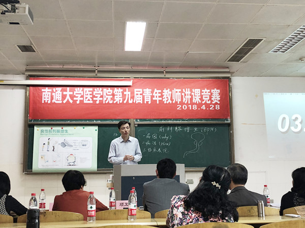 今年3月,南通大学医学院发出关于开展“第九届青年教师讲课竞赛”活动的通知。吴江区一院领导高度重视,医院科教处积极响应,于4月23日在本院组织开展了“任课教师讲课竞赛、理论培训活动”,拔出优胜者参加南通大学医学院举行的教授课比赛。泌尿外科的沈罡老师在此轮比赛中脱颖而出,代表吴江区一院前往南通大学医学院参赛。