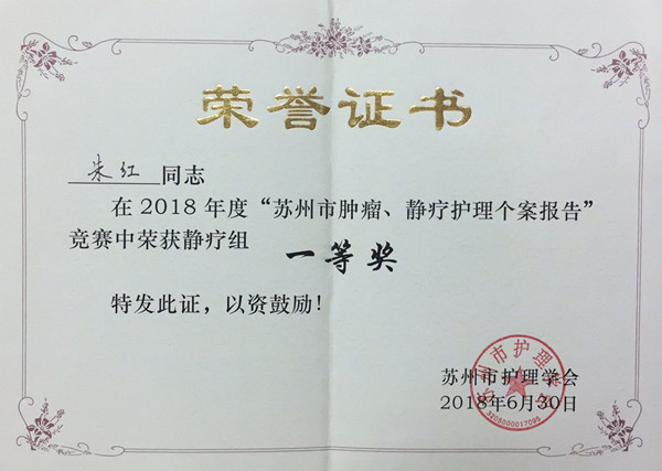 今年3月,为充分展示苏州市护理人员的专业风采,提高肿瘤、静脉治疗个案护理的质量,苏州市护理学会肿瘤和静脉输液专业委员会联合举办“苏州市肿瘤、静疗护理个案报告”竞赛活动。