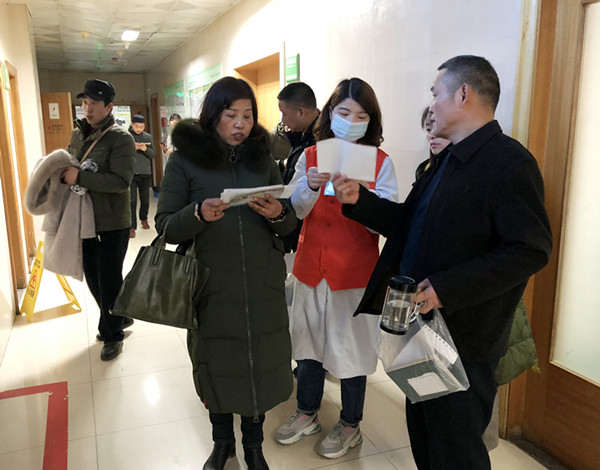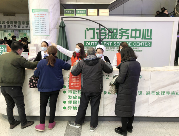 在内镜室和影像科门口,志愿者们帮助分流病人,倡导文明就医。