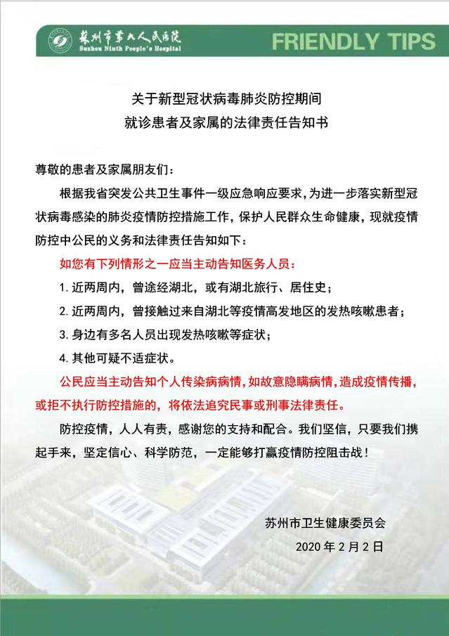 关于新型冠状病毒肺炎防控期间就诊患者及家属的法律责任告知书