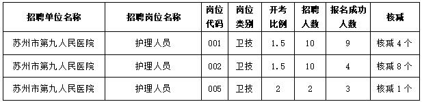 2020年苏州市第九人民公开招聘合同制专业技术人员自2020年6月23日至2020年6月24日报名结束,共有3个岗位报名人数不足开考比例,根据规定,核减招聘计划,并公布如下: