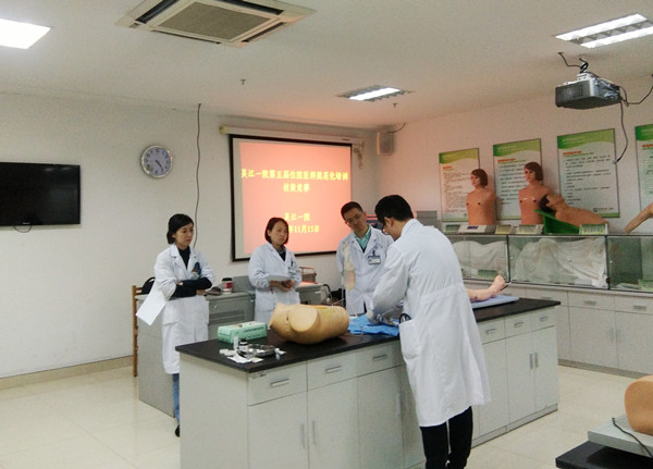 本次竞赛项目分别为“心肺复苏、电除颤”、“腹腔穿刺”和“基本手术操作”,比赛项目严格参照技能考核的标准和要求进行打分。评委由各教研室推荐的临床科主任和中青年专家组成。科教处副主任宁志强全程督导。
