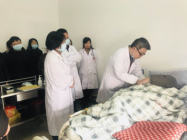 全科医学科临床实践基地乔慧瑛主治医师担任本次教学查房示范带教老师,吕荣主任为教学查房点评专家。本次教学查房选择一名85岁男性患者,主要诊断为“扩心病、房颤、心功能不全”。规培生陈亚萍床旁汇报病史及目前情况。