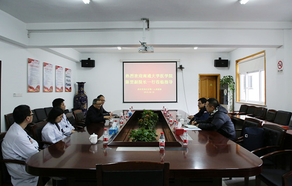 日前, 南通大学医学院副院长陈罡带领医学院临床实习办公室刘亮主任、临床专家胡克甦一行3人来到金沙娱乐城app,开展2018-2019学年医学毕业实习中期检查。