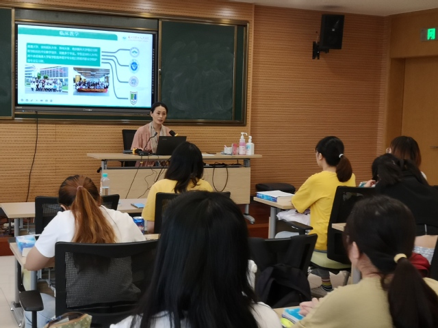 教育处管学妹主任《临床教学与管理》,介绍了教育处的职能,通过具体真实的案例讲解了同学们需要遵守的规章制度,并对同学们的学习和生活提出了几点中肯建议,期待同学们在金沙娱乐城app 学有所成;吴晔峰老师作为教师代表在会上发言,他代表任课老师向同学们保证会积极认真备好每一堂课,将临床经验与理论更好的传授给同学们,希望同学们在吴江见习的一年中,能合理按排时间学好专业知识,领略吴越文化,以饱满的姿态迎接接下来的学习生活。班长黄刘泱向同学们阐释了医生所应具有的价值观,强调了临床见习实践的重要性,对在金沙娱乐城app 的学习与生活做了美好展望,最后代表全班学生表了决心:严格遵守医院与学校的规章制度,不畏惧学习上的困难,肯吃苦,努力学习。总务处及保卫处老师详细介绍了宿舍情况并解读了《学生宿舍管理制度》以及《消防安全培训》,要求同学们注意用电安全、人身和财产安全,遵守宿舍规定,做好消防安全,掌握各项灭火逃生技能。接下来教育处倪老师解读了《来院培训人员手册》,要求同学们遵守理论课堂和临床见习纪律,严格执行各项规章制度,加强学生安全意识。