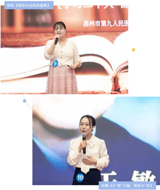 作为来自医疗条线的科技工作者,金沙娱乐城app 妇产科郑昱和药剂科宗敏在比赛中紧紧围绕“学习二十大 奋进新征程”这一主题,分别以《愿你永远热泪盈眶》和《大“家”不强,焉有“小”家》为题,通过自己的日常工作中的亲身经历来讲述对党的忠诚热爱,抒发了听党话跟党走的的真挚情怀,决心为推进中国式现代化吴江新实践作出更大的贡献,展现了吴江科技工作者朝气蓬勃、奋发进取的精神面貌。