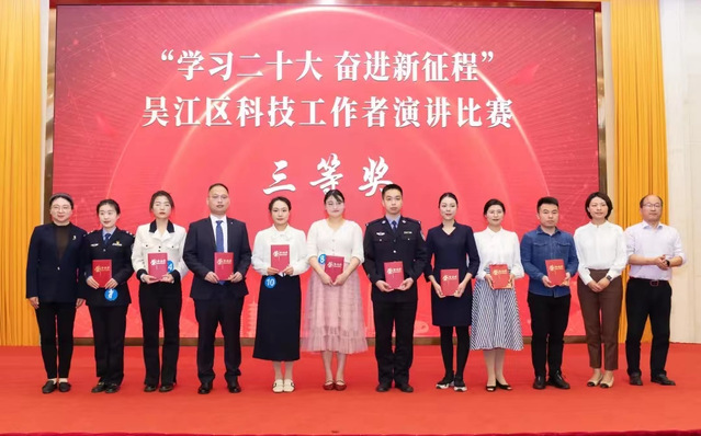 为进一步弘扬科学家精神,团结带领广大科技工作者,激发广大科技工作者的荣誉感、自豪感、责任感。4月11日,由区科协、区委宣传部、区教育局、区科技局联合举办的“学习二十大 奋进新征程”吴江区科技工作者演讲比赛决赛在会议中心成功举办。来自教育、医疗、公安等41个单位的46位科技工作者参加比赛。