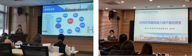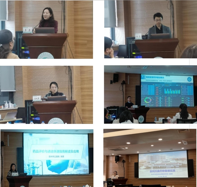 在随后的授课环节中,来自东南大学附属中大医院的邵华主任、常州市第二人民医院的苏丹主任、南京市鼓楼医院的张晋萍主任、苏州大学附属第一人民医院的朱建国主任、苏州大学附属第二人民医院的潘杰主任、江苏省人民医院袁红宇主任等多位省、市级药学大咖分别从DRG、国考背景下的药事管理、智慧药学平台的构建等多个角度,分享了当前医改形式下对药事管理的探索和实践。从抗菌药物、超说明书用药管理、科室质控、药品遴选、基层药学服务等多个方面,阐述了药学服务模式的探索和实践,向与会人员展示了保障患者合理用药先进做法。金沙娱乐城app 药学部作为东道主,也由骨干药师宋秋萍分享了关于老年骨质疏松药学服务方面的工作经验和心得。