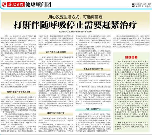 据世界卫生组织一项调查显示,在世界人口中,有27%的人存在睡眠问题。“打呼噜”,即睡眠呼吸暂停综合征,是其中的主要问题之一。目前研究发现,阻塞性睡眠呼吸暂停综合征与高血压、糖尿病、心房颤动、冠状动脉硬化性心脏病、心力衰竭、脑卒中等多种疾病密切相关。换句话说,阻塞性睡眠呼吸暂停综合征与大多数的慢性疾病相关。因此,及早发现和及早治疗刻不容缓。