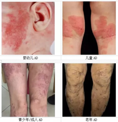 不同年龄的AD表现不尽相同。瘙痒是各个年龄段AD共有且最显著的特点,通常较剧烈,同时大部分患者有皮肤干燥。