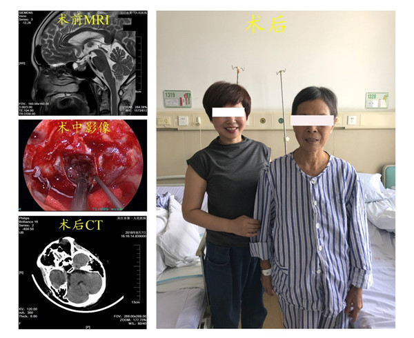 简介:患者老年女性,既往体健,因视物模糊于金沙娱乐城app门诊就诊,完善头颅核磁共振检测后以“垂体瘤”诊断收住入院。入院后完善术前检查,神经外科团队讨论后一致建议行内镜辅助下垂体瘤切除术。随后在神经外科周密安排以及手术室和麻醉科积极配合下,张卫主任医师为患者实施神经内镜经鼻垂体瘤切除术,术中全切肿瘤,手术非常顺利。术后复查CT提示垂体瘤切除完全,视物模糊明显改善,术后第二天患者可下床活动,一周后达到出院条件。