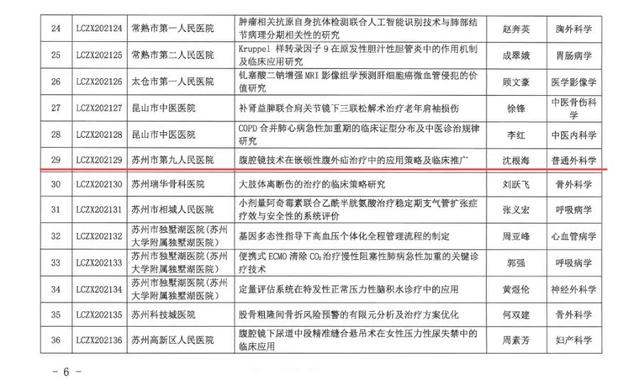 呼吸与危重症医学科获评苏州市医学重点学科,老年医学科获评苏州市医学重点扶持学科,普外科的“腹腔镜技术在嵌顿性腹外疝治疗中的应用策略及临床推广”获得苏州市临床重点病种诊疗技术专项项目立项。