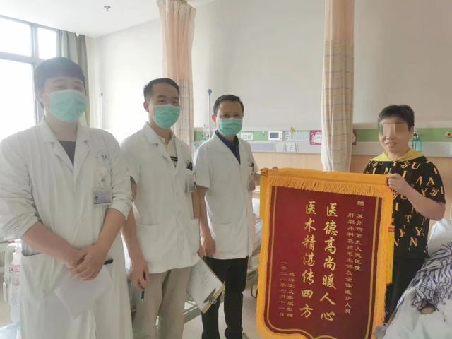 肝胆胰脾外科全体医护人员送来了一面锦旗,以表达患者及家属的感激之情。