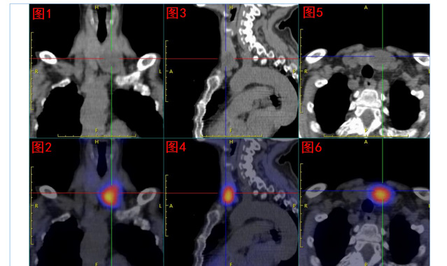 核医学科双时相甲状旁腺核素SPECT/CT显像发现:甲状腺左叶下极处显像剂异常浓聚,考虑为功能亢进甲状旁腺组织;但是该组织主体位于甲状腺左叶内,非甲状旁腺常见部位,遂反馈给吕荣主任医师团队,建议进一步行甲状旁腺及甲状腺超声检查。