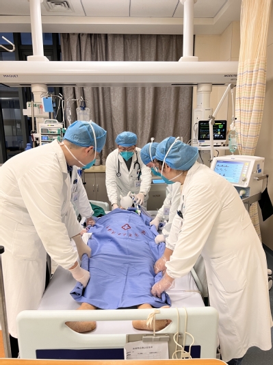 住院期间,患者新冠病毒检测阳性,先后出现了高热40℃不退、肝肾功能不全、心肌损害、严重的腹泻、电解质紊乱、低蛋白血症等危急情况,在新冠救治专家组组长吴巧珍的指导下,经过董凌云主任医师、张剑锋副主任医师、郑江南副主任医师团队的精心治疗,张露艳护士长护理团队的细致护理,这名患者度过了一道又一道难关,近期复查胸部CT感染已明显吸收好转,脉氧明显改善,并于1月10日顺利脱机拔管。