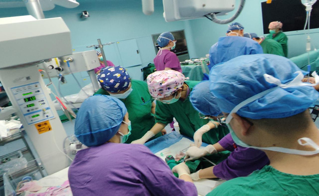在产安办的协调下,产科与心血管内科、神经内科、内分泌科、麻醉科、ICU、新生儿科高级专家成员集中会诊,讨论治疗方案协同抢救,积极稳定孕妇的血压和血糖,并讨论决定为救治宫内窘迫的胎儿行急诊剖宫产。因情况突发孕妇家属未到院,在电话沟通、孕妇本人签字及医院总值班备案下,完成术前评估后即刻推入手术室娩出一体重仅1.5kg的早产婴儿,产妇术中血压心率都曾有大幅度波动,经麻醉和心血管内科处理最终血压稳定在140/85mmhg左右,血糖维持在12—16.0mmol/L。