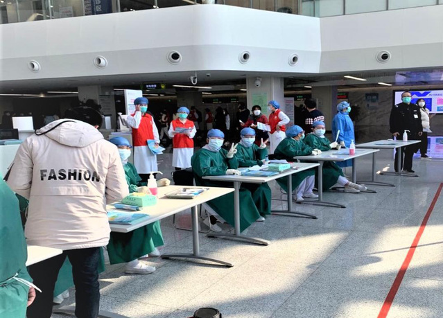 “你好,请问最近14天离开过吴江吗?”“最近14天内接触过外地返吴人员吗”“您有发热、咳嗽、腹泻症状吗?”“有聚集性发热吗”“有没有接触过确诊或疑似肺炎的病人”,我们调侃说:一夫当关万夫莫开,每一个经过的人员必须接受“灵魂拷问”,而这样的询问,每天都要重复几百上千次。由于我们穿着防护服,戴着双层口罩,期间不能喝水,半天下来就口干舌燥,嗓子冒烟,头脑发晕。但我们一天天坚持着,用坚定地信心迎接战役的全面胜利。