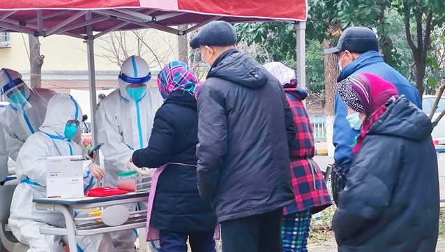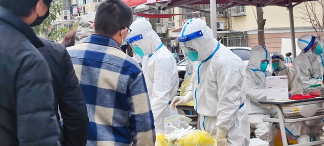 九院650人社区核酸采样预备队伍早已成立,并且曾进行演习,就是为了万一疫情肆虐,我们可以第一时间,有序地出现在社区居民面前。2月13日傍晚,预备队伍各个组长建立小组工作群,以方便随时启用检测队伍。2月14日凌晨,核酸采样预备队伍的医护人员陆续接到电话,有人02:00就到达医院待命,有人下夜班来不及回家一趟就直接奔赴社区,有人伴着晨曦就开始了不知道什么时候才能结束的核酸检测工作。