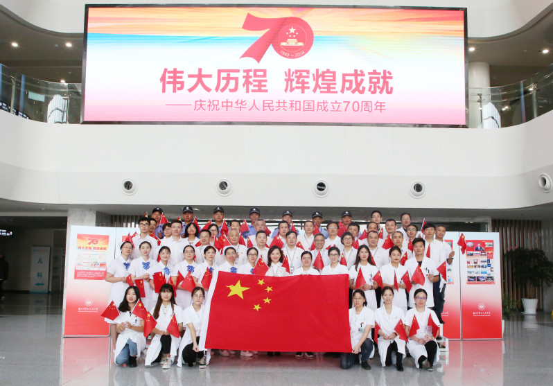 9月28日清晨,金沙娱乐城app 举行“我和我的祖国——金沙娱乐城app 跨越新征程”升国旗仪式。全体院领导、中层干部、医护人员代表100多人组成“天使方阵”,参加庄严的升国旗仪式。