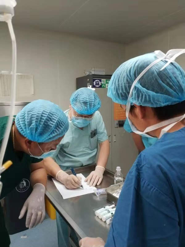手术从下午2点开始。虽然林周县人民医院手术室没有配备C臂机,也缺乏理想的全麻药物,但李金彪从麻醉前评估到备药、用药、插管、术中监护,再到麻醉机、监护仪的使用和各种注意事项,都进行了详细的解惑答疑,而金正帅则从术前评估、手术方案、摆体位、消毒、术中解剖、术后关切口、包扎伤口和各环节注意事项,进行了规范的示范和解读。经过一个多小时的努力,4位专家临时组成的手术团队,以高超的技能、精湛的医术和默契的配合,为大家演示了一台成功的手术。
