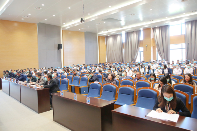 全体院领导、中层干部、各党总支书记、各支部书记、委员参会。根据防疫要求,所有参会者均提前进行了核酸检测。动员大会由医院党委副书记、院长沈根海主持。