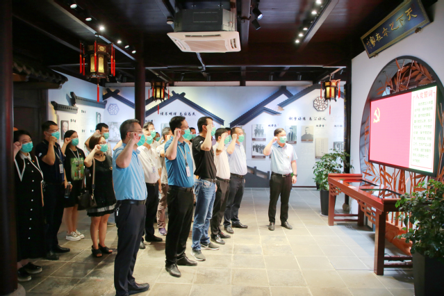 在吴江家风家训传承馆,全体人员集体学习了习近平总书记关于家风家训的重要论述,重温了入党誓词。在讲解员的带领下,党员干部们在“风范世家”“家风典故”“吴江名宦”三大板块驻足停留,了解“修建垂虹桥”的李问、“驴车宰相”沈桂芬、陈去病、柳亚子、费孝通、程开甲等吴江历代书香世家、乡贤名流、清官廉吏的优秀家风家训。