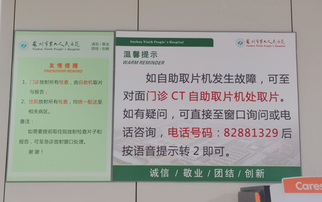 CT门诊患者都是通过自助取片机取胶片和报告,先前一旦发生机器故障,患者无法明确知道该向谁反映询问,以及如何快速取出胶片和报告。