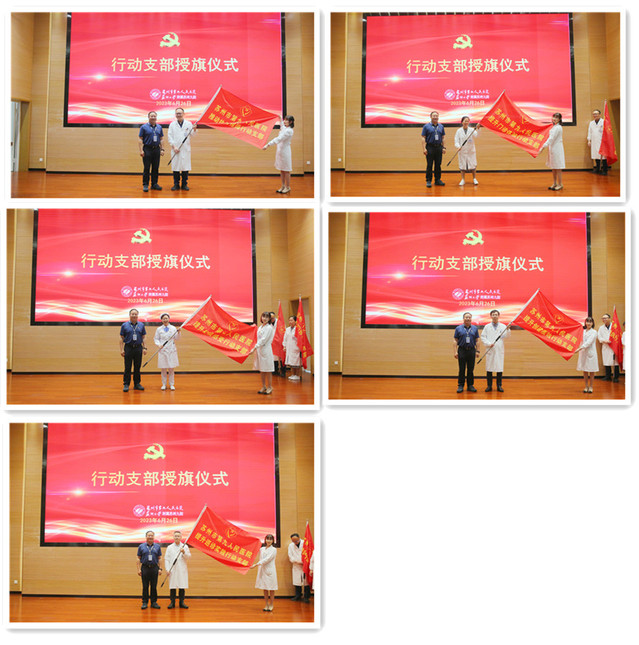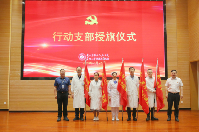 6月26日下午,金沙娱乐城app 举行“一推动四提升”工程启动仪式暨“党旗引领我”行动支部授旗仪式。吴江区卫健委党委书记、主任,金沙娱乐城app 党委书记沈宇出席活动,并为5个行动支部授旗。