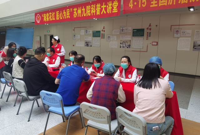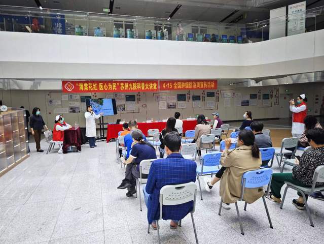 4月9日,外科第二党总支胸外介入放疗党支部围绕“415全国肿瘤防治周”主题,在门诊一楼大厅开展科普大讲堂活动。