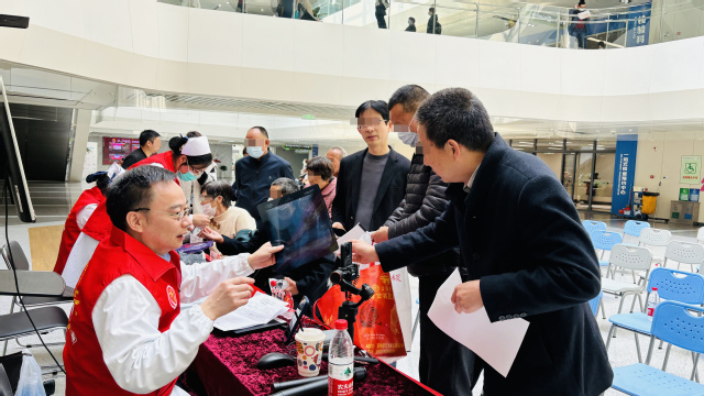 4月16日,内科第二党总支围绕“415全国肿瘤防治周”主题,在门诊一楼大厅开展科普知识宣讲和多学科联合义诊活动。