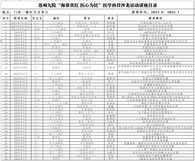 活动中,科技处副主任、普外科副主任医师吴晔峰作题为《外科机器人手术:1+1>2》的讲座;神经内科副主任医师杨秀艳作题为《脑血管介入技术的临床进展》的讲座;妇科主治医师苏海兰作题为《3D技术在妇科诊疗中的应用》的讲座;党政办主任宁志强和教育处主任管学妹分别围绕融入式党建工作和实习生培养工作提出意见建议。