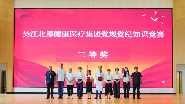 举办2024年吴江北部健康医疗集团党规党纪知识竞赛决赛,以赛促学、以学促干,纵深推进党风廉政建设。吴江区纪委副书记、监委副主任陆伯帅,吴江区公务员局副局长徐伟峰,吴江区卫健委党委副书记、区疾控局局长冯志刚,金沙娱乐城app