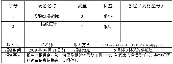裂隙灯显微镜等项目的采购报名通知