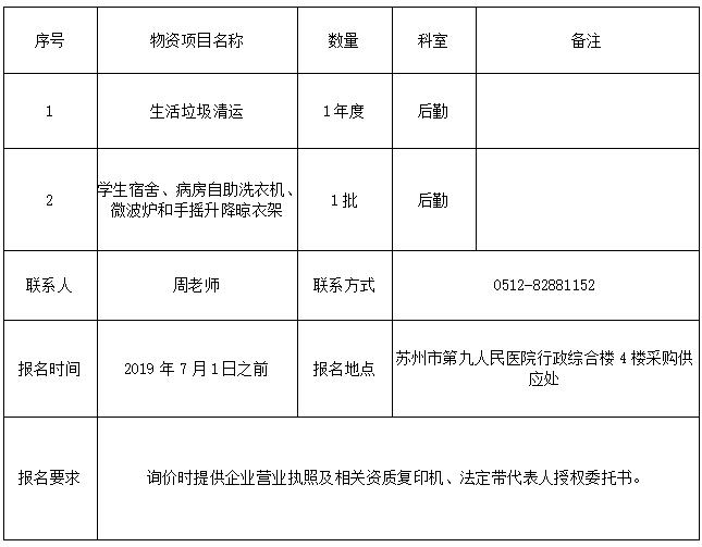 生活垃圾清运、学生宿舍和病房自助洗衣机、微波炉和手摇升降晾衣架询价报名通知