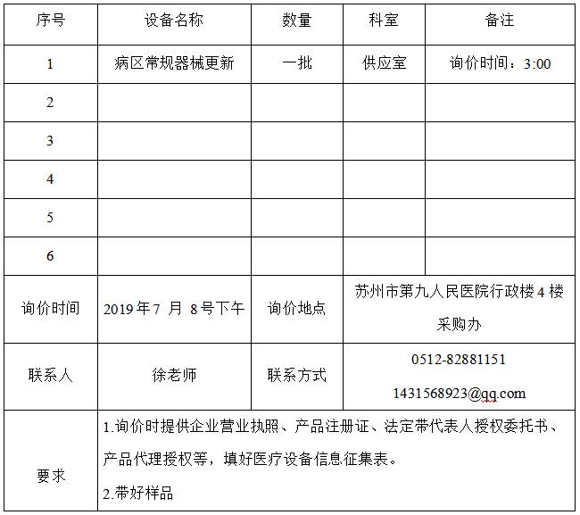 病区常规器械更新 等项目的询价公告