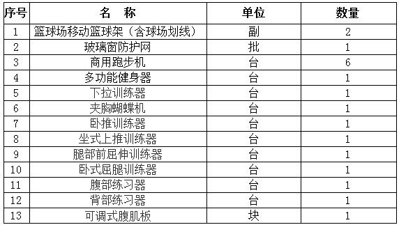 金沙娱乐城app职工活动中心欲新增配置一批运动器材,如下表:
