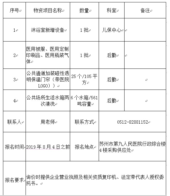 沐浴室新增设备等询价采购通知