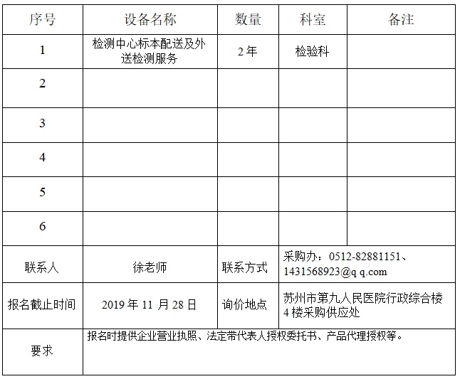 检测中心标本配送及外送检测 采购报名通知