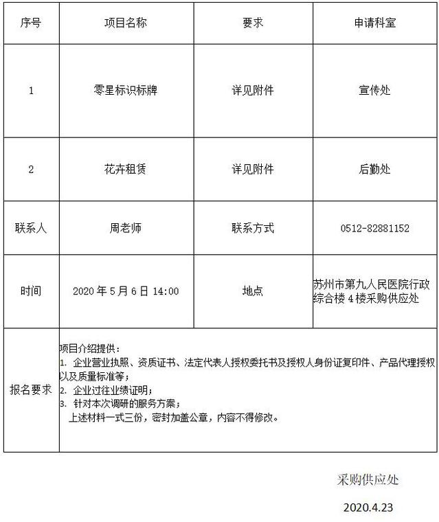 零星标识标牌、花卉租赁院内招标公告
