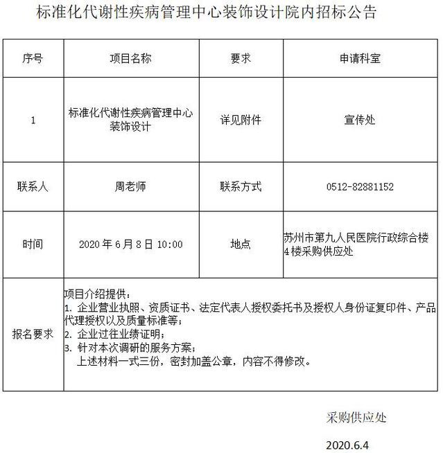 标准化代谢性疾病管理中心装饰设计院内招标公告