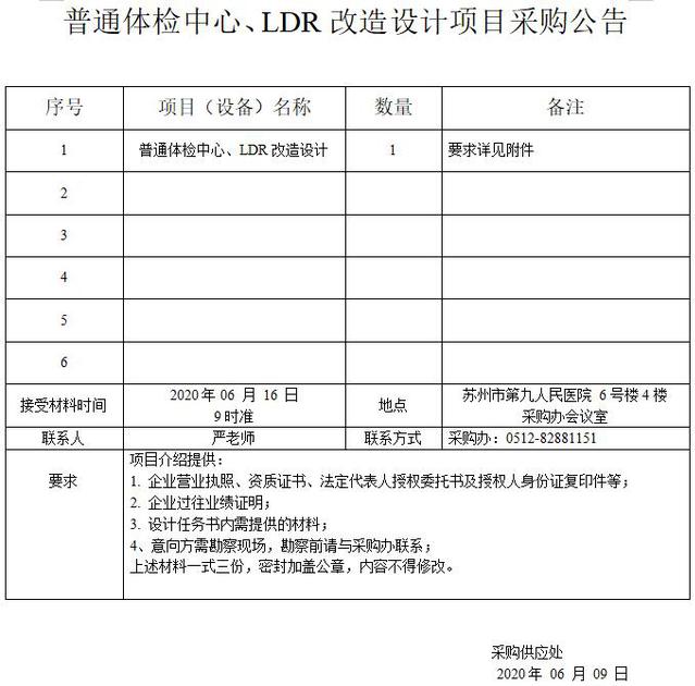 普通体检中心、LDR改造设计项目采购公告